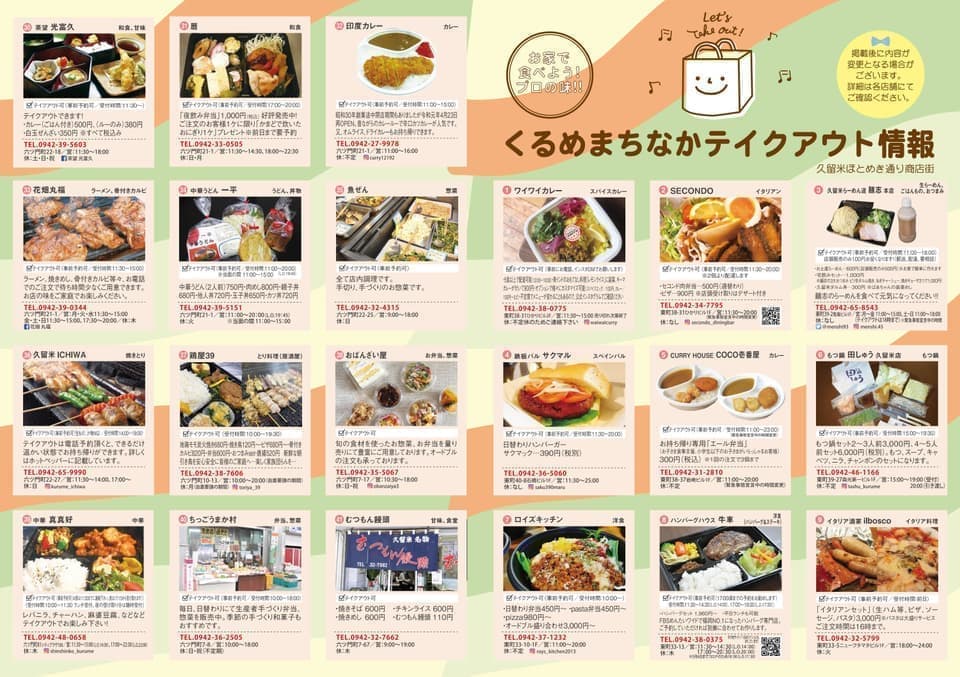 くるめ まちなか テイクアウト情報 ( 飲食店編 ) 久留米ほとめき通り商店街